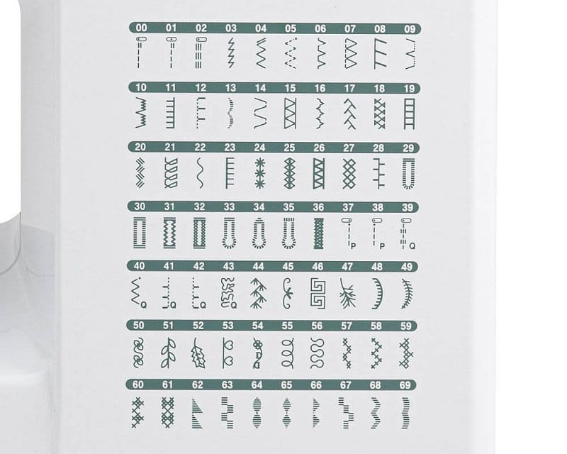 - 70 wbudowanych ściegów, 7 rodzajów obszycia dziurek na guziki