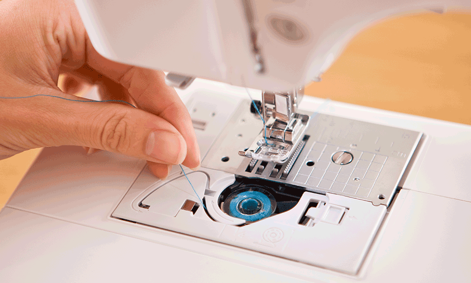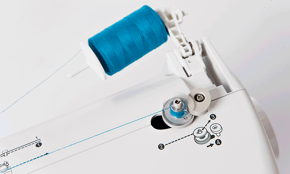 - automatyczny rygiel - maszyna automatycznie mocuje ścieg na początku i na końcu szwu, aby zapobiec wypruwaniu się nitki,