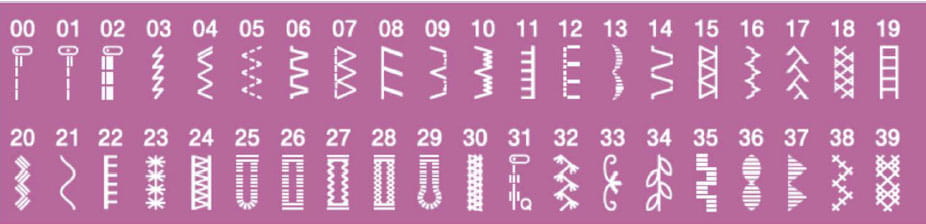 - 40 ściegów, w tym ściegi dekoracyjne, owelokowe, podstawowe, kryte,