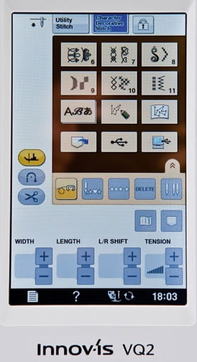 Maszyna wyposażona jest w duży (7 cali), kolorowy i zaawansowany technologicznie ekran LCD. Umożliwia sterowanie wszystkimi funkcjami maszyny oraz użytkownik może tworzyć i zapisywać własne ściegi bądź wybierać z 545 już wbudowanych. Urządzenie ma zaprogramowane 14 rodzajów perfekcyjnego obszycia dziurki i 5 czcionek alfabetu.