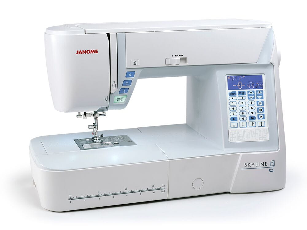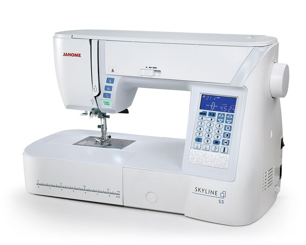 posiada większy rozmiar, niż standardowe maszyny. Odległość pomiędzy igłą, a ramieniem wynosi aż 21 cm. W efekcie zyskujemy ogromną przestrzeń roboczą, niezwykle cenną podczas szycia patchworków i pikowania. Ogromna liczba 388 dostępnych ściegów, na którą składają się ściegi użytkowe, różnorodne ściegi dekoracyjne, 8 typów obszycia dziurek oraz alfabet wraz z polskimi literami, pozwala na sprostanie każdemu szyciowemu wyzwaniu. Szereg automatycznych funkcji zadba o komfort oraz oszczędność czasu i materiałów podczas pracy. Skyline S3 wykonano z dbałością o detale, jest doskonałym przykładem legendarnej jakości Janome. Pomimo swego zaawansowania maszyna jest bardzo łatwa w obsłudze.