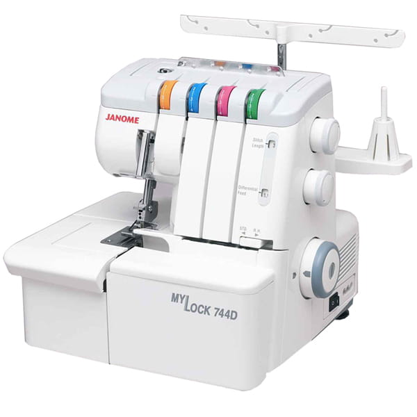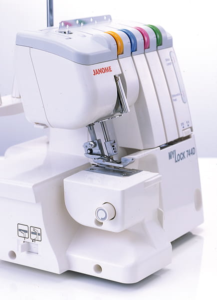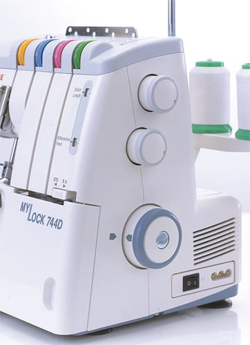 Owerlok pozwoli bez trudu pracować z najróżniejszymi materiałami. Dzięki regulowanemu dociskowi stopki i precyzyjnemu transportowi różnicowemu dzianiny, jedwab, materiały elastyczne, a nawet wełniane koce nie będą stanowić kłopotu. Maksymalna prędkość z jaką możemy pracować to 1300 wkłuć na minutę. Warto zauważyć, że maszynę wyposażono w wolne ramię, co pozwoli na łatwe obrzucenie krawędzi np. rękawków. Dla ułatwienia obsługi producent zastosował w urządzeniu kolorowe oznaczenia systemu nawlekania oraz nawlekacz dolnego chwytacza.