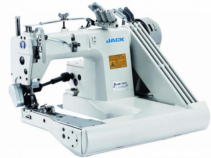 Maszyna ramieniowa 3 igłowa, 6-nitkowa o ściegu łańcuszkowym, wyposażona w zwijacz materiałów. Przeznaczona do szycia szwów podwójnie zawiniętych (tzw. ścieg francuski) z materiałów ciężkich np. szwy boczne, rękawy i nogawki w ubraniach roboczych, mundurach polowych itp.
