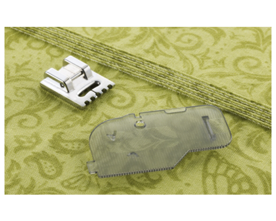 Stopka umożliwia precyzyjne wyszywanie wypustek z kordonkiem przy zastosowaniu podwójnej igły.