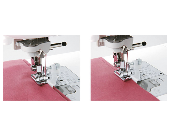 Stopka ułatwia przeszywanie materiału wzdłuż krawędzi w odpowiednio wyregulowanej odległości od brzegu. Dzięki tej stopce możemy mieć pewność wykonania równiutkiego przeszycia wzdłuż brzegu.