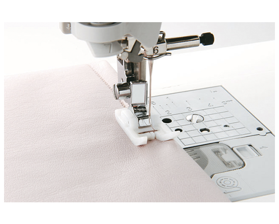 Stopka nieprzezroczysta wykonana z teflonu przeznaczona jest do szycia tkanin szczególnie trudnych i opornych jak śliskie powierzchnie winylu, tworzywa na obrusy, niektóre skóry i tkaniny o niejednorodnej fakturze.