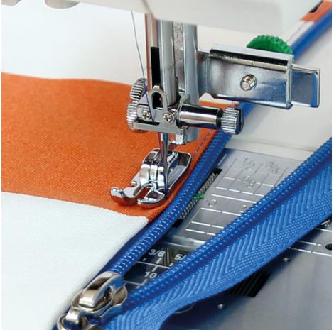 Dzięki specjalistycznej stopce do wszywania zamków to zadanie staje się o wiele prostsze i na jego wykonanie poświęcisz mniej czasu. Konstrukcja stopki umożliwia szycie tuż przy ząbkach suwaka, dzięki czemu końcowy efekt jest bardzo estetyczny. Zastosowanie śruby regulacyjnej pozwala na swobodne dopasowanie pozycji stopki względem igły i szycie zarówno z lewej, jak i prawej strony. Stopka świetnie sprawdza się podczas wszywania zwykłego zamka, ale przy odrobinie wprawy pozwoli również na wszywanie zamków krytych, czy wypustek.