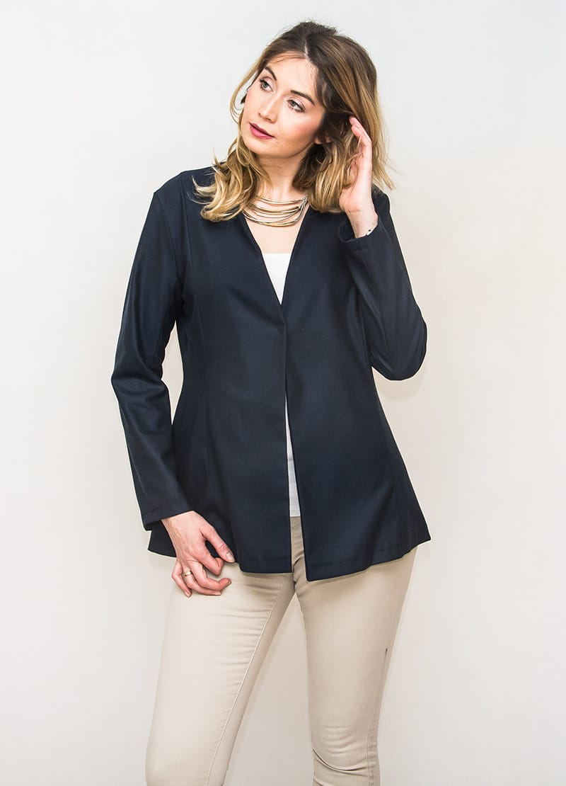 W oparciu o wykrój Victoria uszyjesz lekko dopasowany do sylwetki żakiet. Boczne cięcia delikatnie podkreślają talię, co daje efekt wysubtelnienia sylwetki.